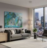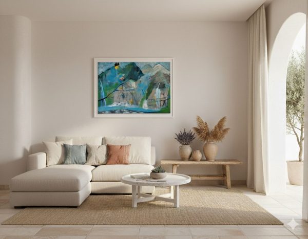 “Plava uvala”, apstraktni pejzaž, akril na platnu, 50x50cm