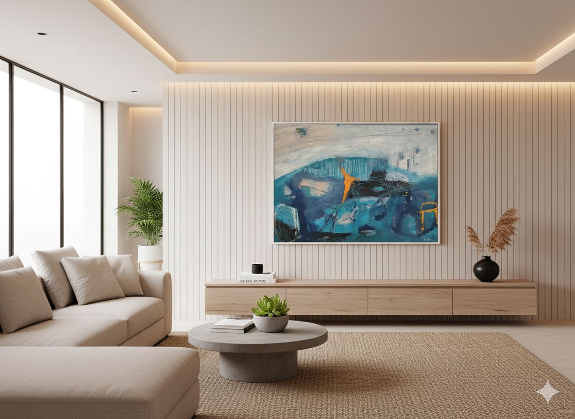 “Plava uvala”, apstraktni pejzaž, akril na platnu, 50x50cm