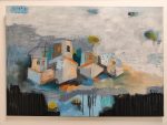 “Iznad plavog svijeta”, akril na platnu, apstraktni pejzaž sa barkama, 100x70cm