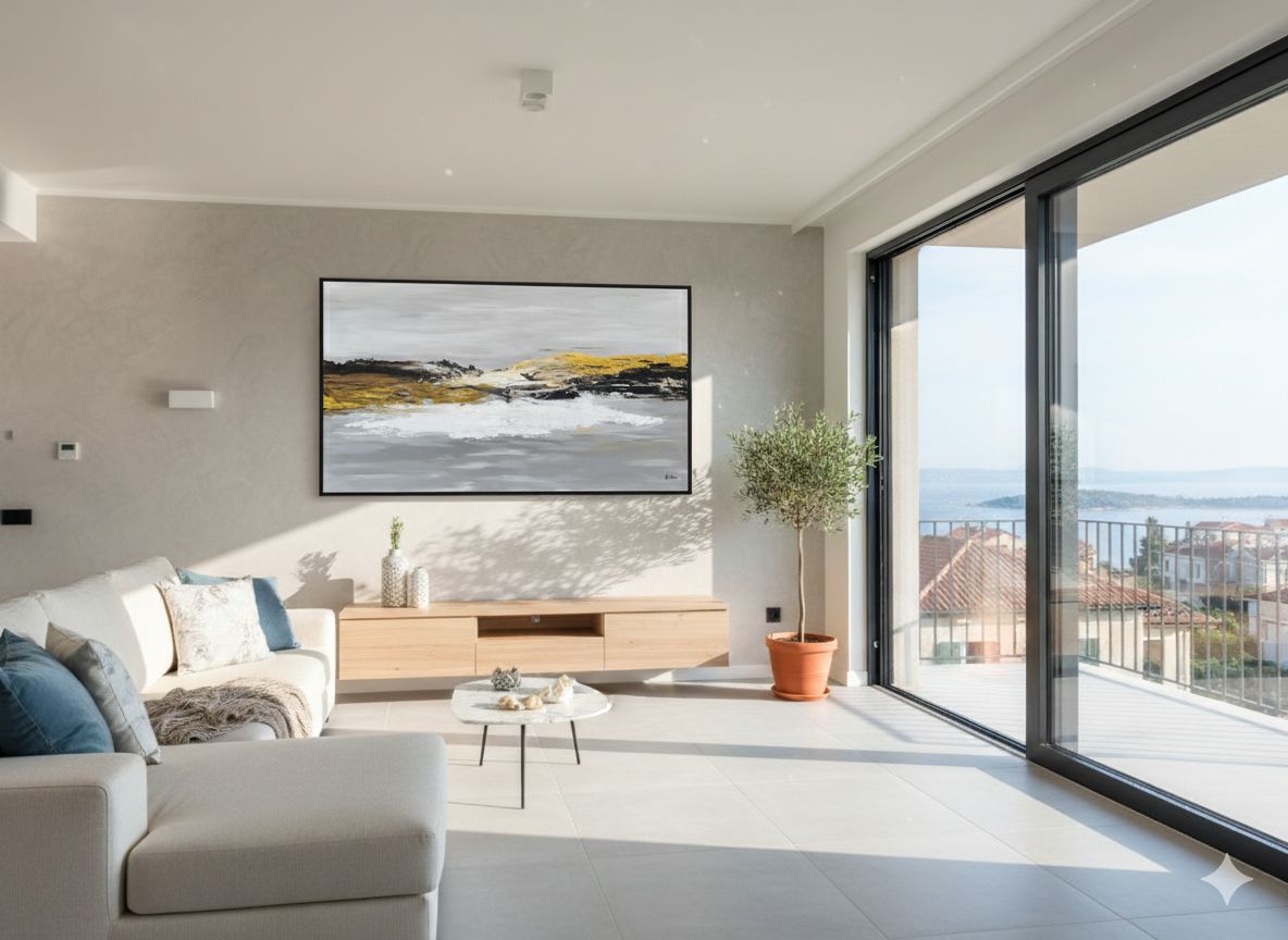 Početna Slike “Obala sjećanja”, akril na platnu, 140x70cm, apstraktni pejzaž