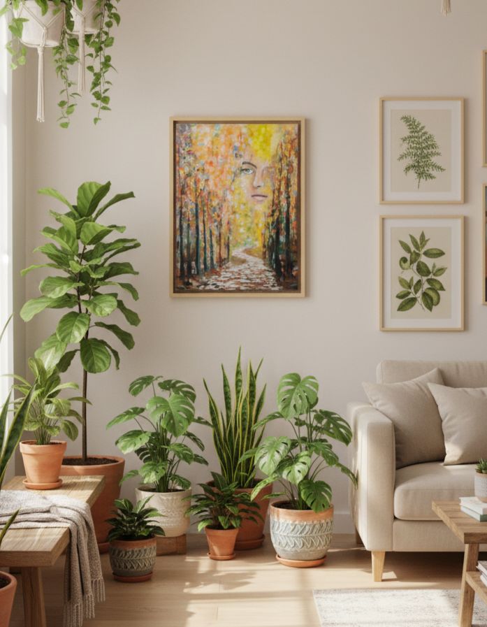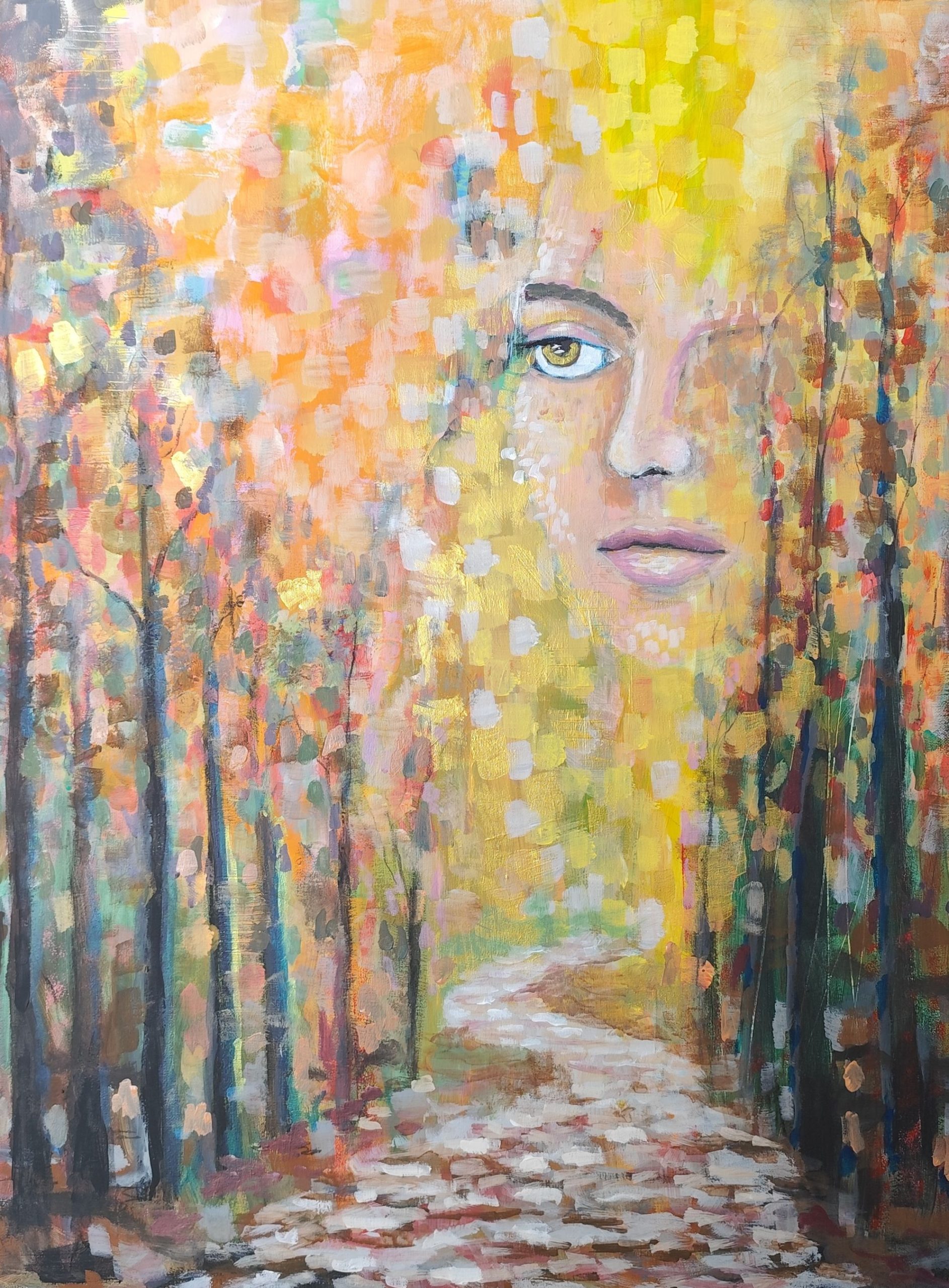 “U očima šumske vile”, apstraktni pejzaž, akril na platnu, 60x80cm