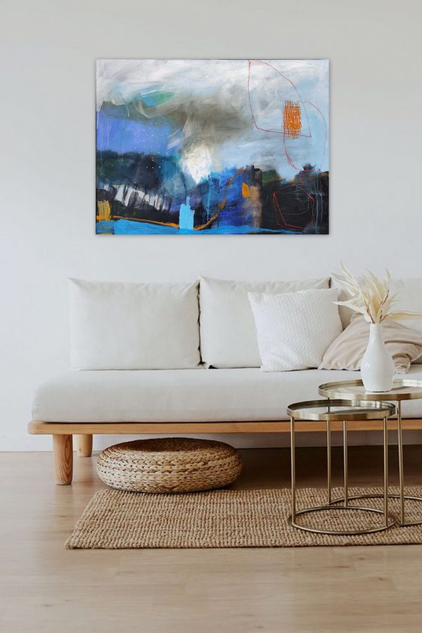 “Plava uvala”, apstraktni pejzaž, akril na platnu, 50x50cm